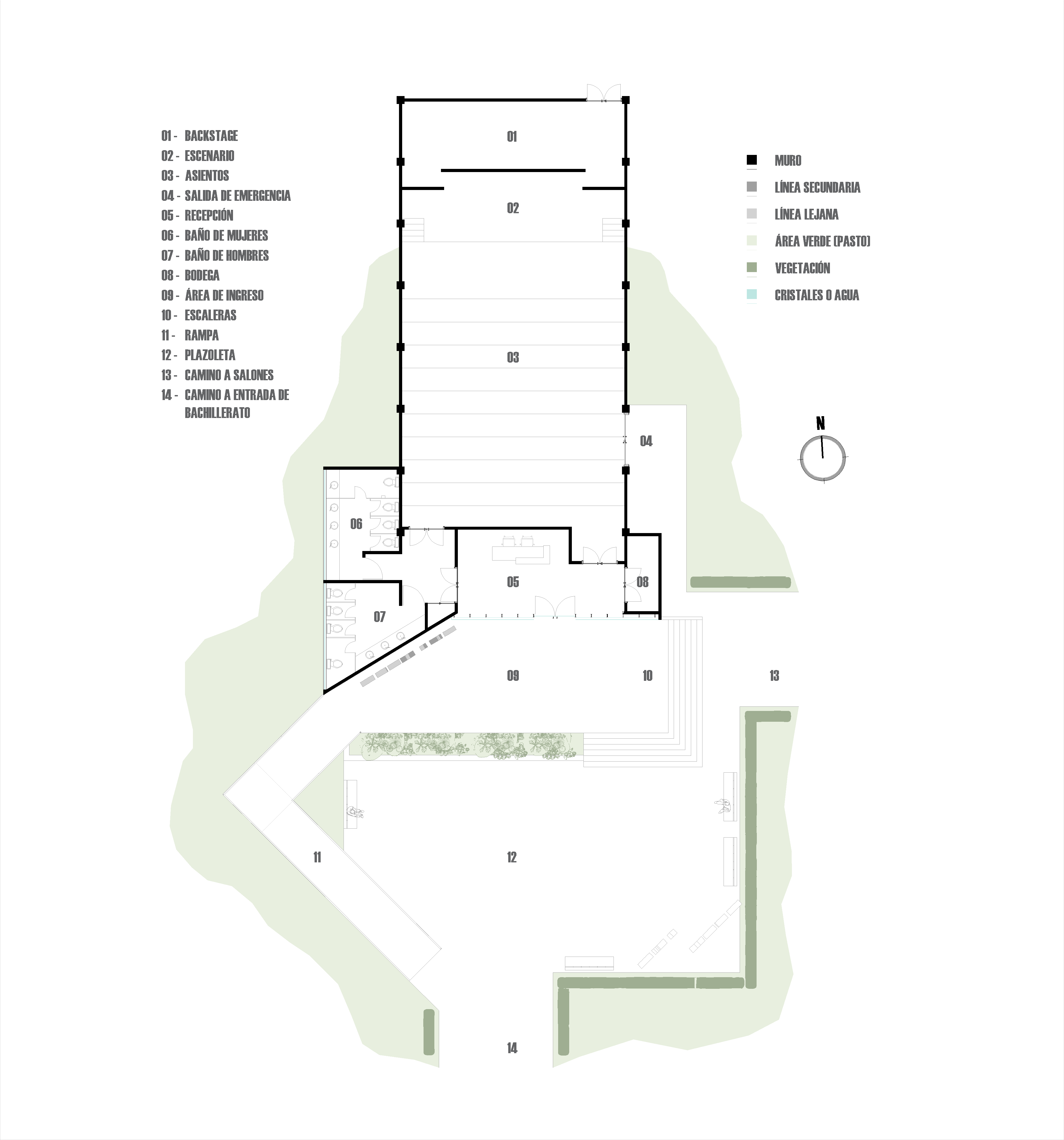 Más allá del escenario: acústica y flujo. Un auditorio no funciona si no se escucha o si se satura en los accesos. Diseñamos una plazoleta exterior que actúa como "vestíbulo urbano", permitiendo que la convivencia social ocurra antes y después de los eventos sin bloquear las circulaciones.