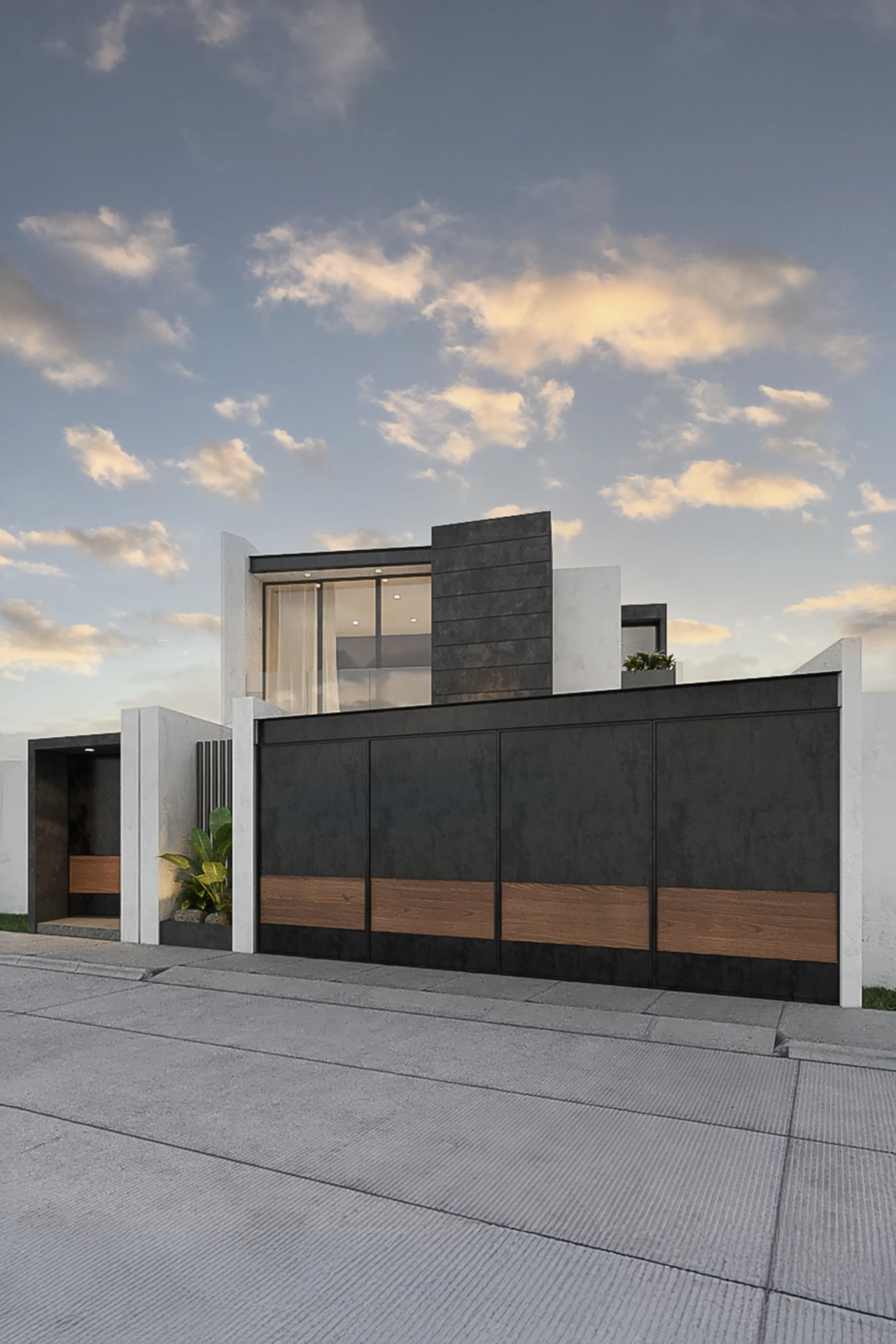 El reto principal fue orientar la casa para ganar privacidad sin perder las corrientes de viento. La solución está en la fachada: un filtro vertical de acero negro que actúa como una segunda piel. Este elemento no es decorativo; fragmenta la luz solar del poniente (la más agresiva) y rompe las visuales desde la calle, permitiendo que las habitaciones de planta alta tengan ventanales de piso a techo que permanecen abiertos, capturando la brisa pero bloqueando el calor.
