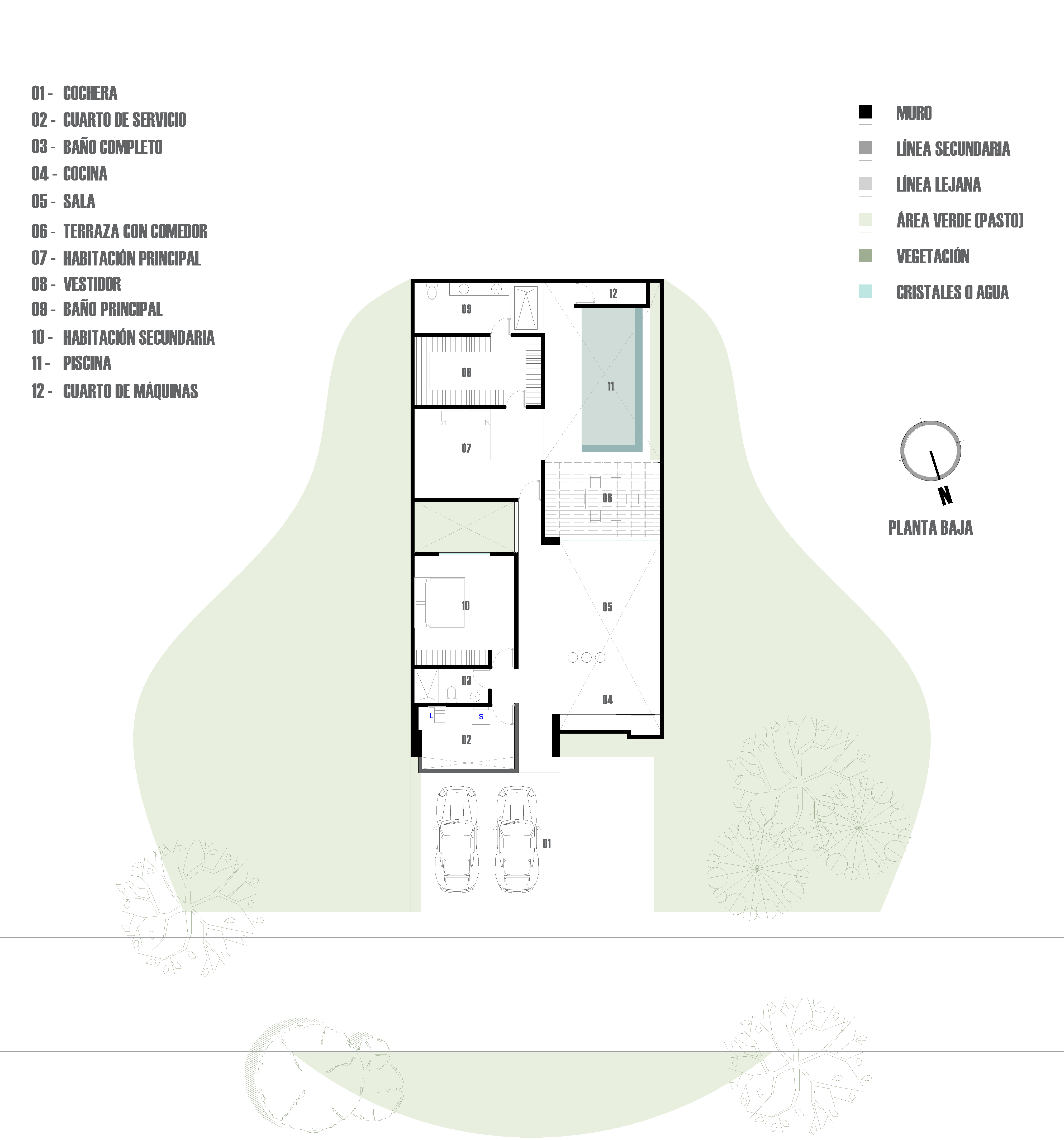 Como proyecto de Interiorismo Integral, Casa Ruiseñor es una exhibición de personalización. Diseñamos mobiliario a la medida que optimiza cada rincón, desde libreros que actúan como celosías hasta credenzas que se funden con la arquitectura.