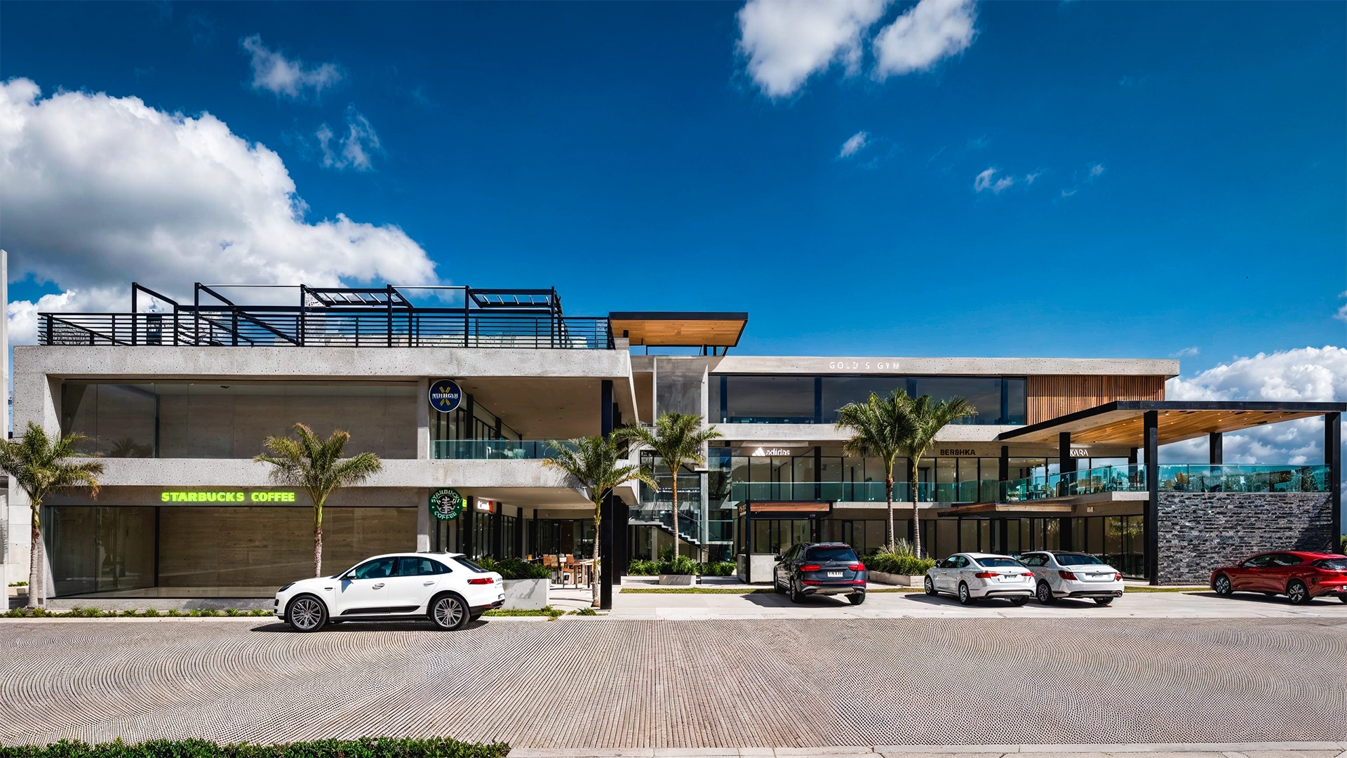 El análisis del sitio nos dictó una solución en dos niveles claramente diferenciados pero conectados. La planta baja se diseñó como una extensión de la calle: una plataforma libre y permeable que maximiza los metros lineales de escaparate, garantizando que cada local tenga visibilidad frontal inmediata.